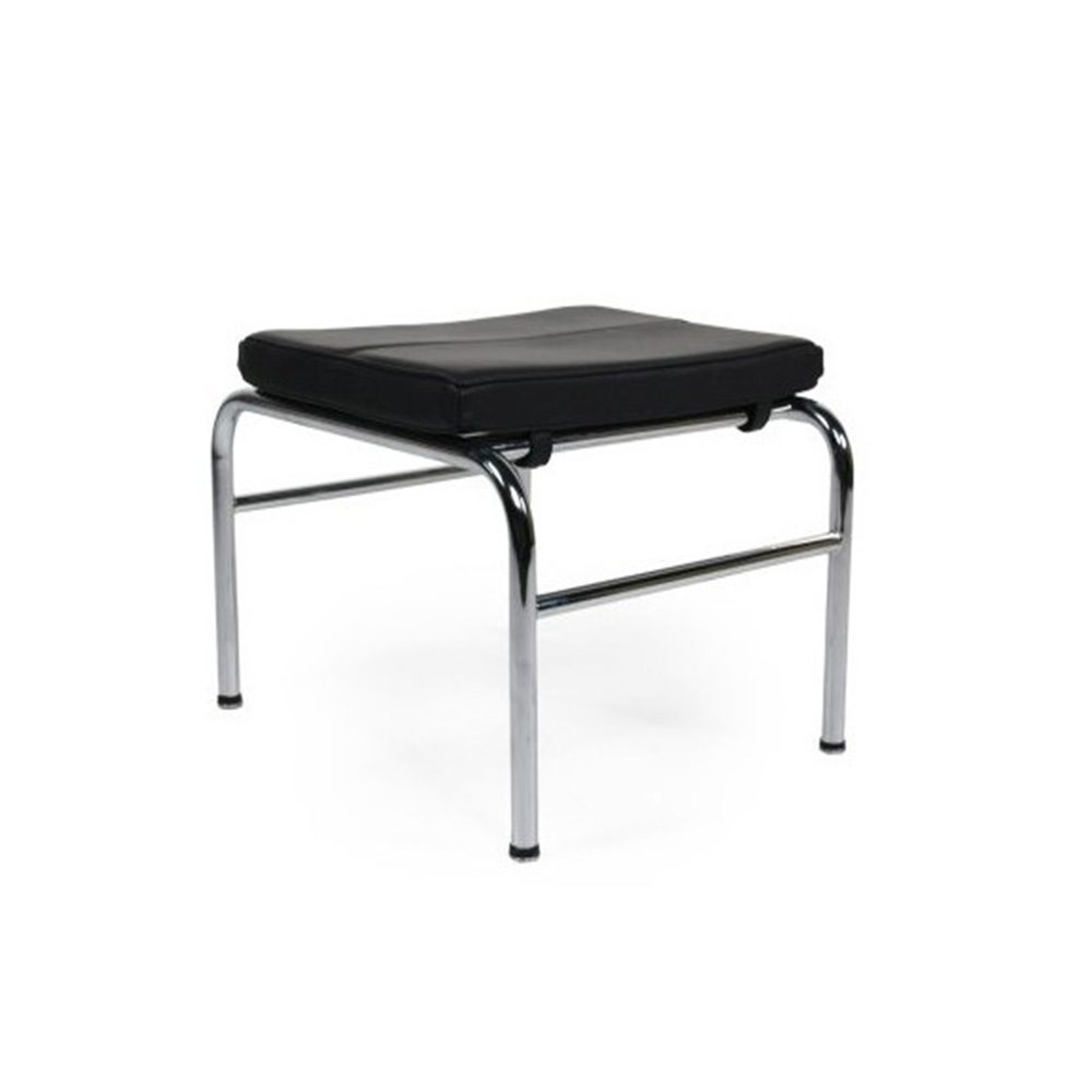 Poggiapiedi in acciaio cromato con cuscino in poliuretano rivestito in pelle pieno fiore.