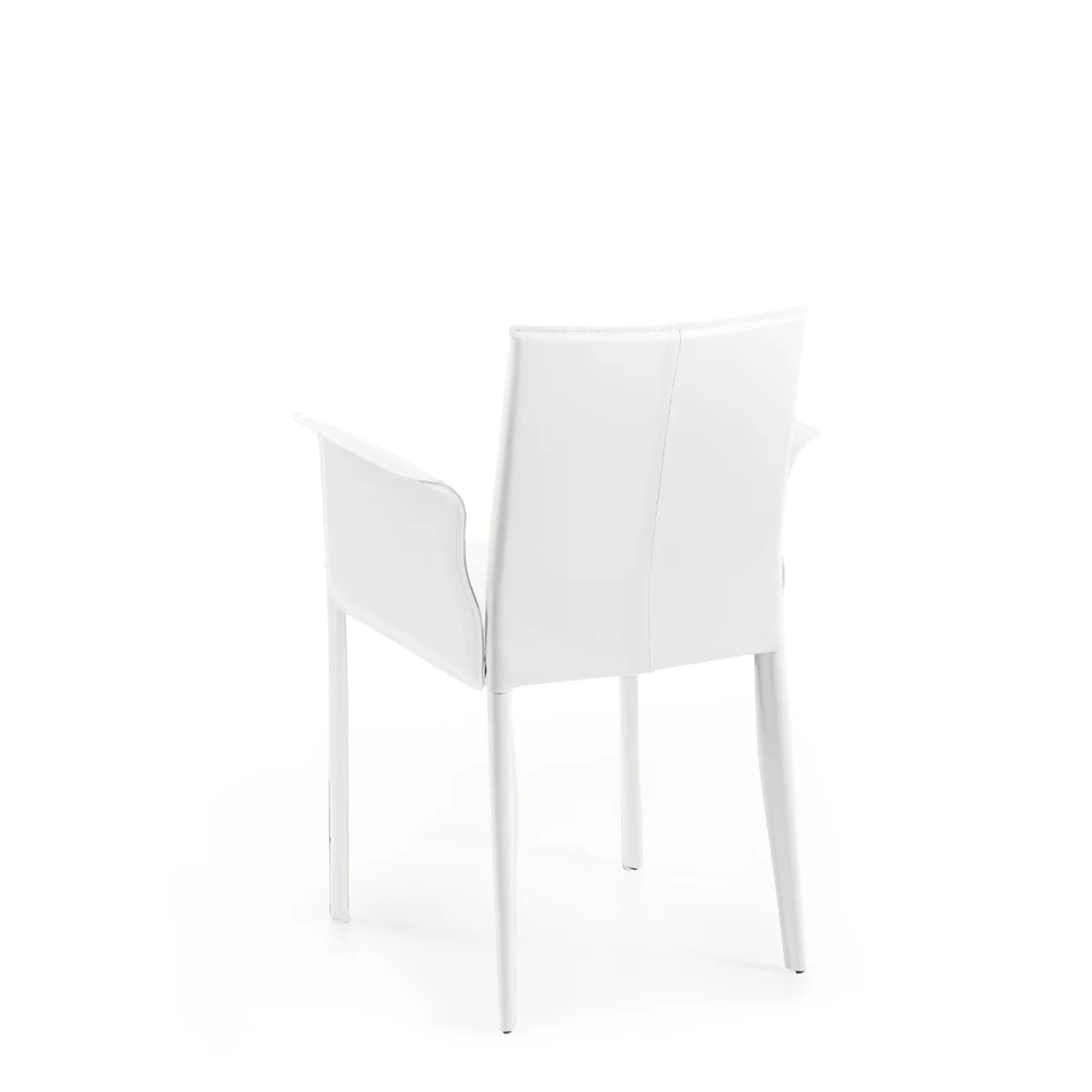 Sedia con braccioli, struttura in tubo di acciaio completamente rivestita o con gambe a vista, schienale basso. Gambe retro coniche