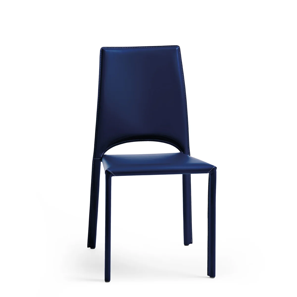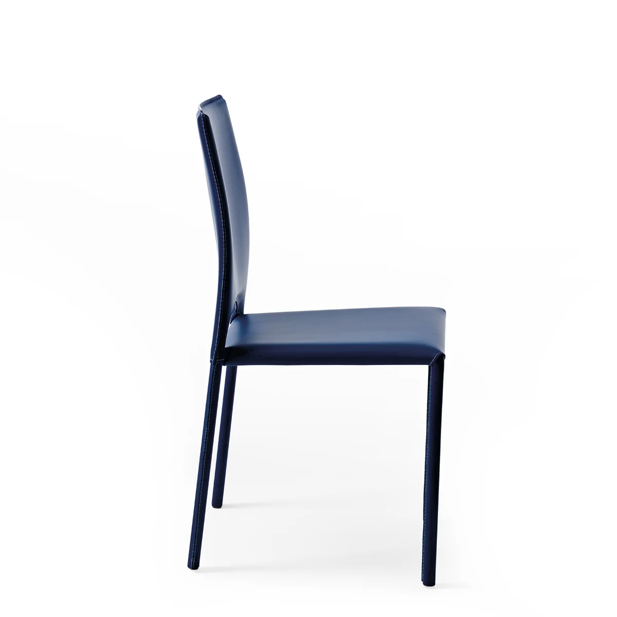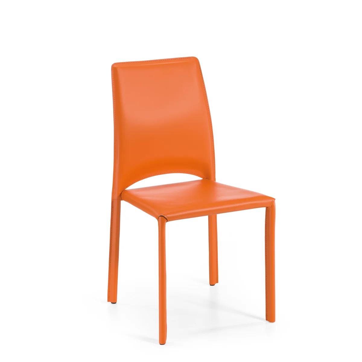 Sedia con struttura in tubo di acciaio completamente rivestita. Impilabile