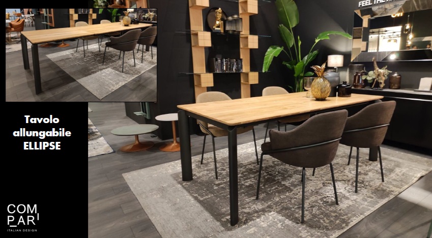 Grazie al suo stile elegante e alla varietà di materiali e finiture, Ellipse della Compar si inserisce perfettamente in ambienti moderni, classici e minimalisti, diventando il protagonista della sala da pranzo o della cucina.