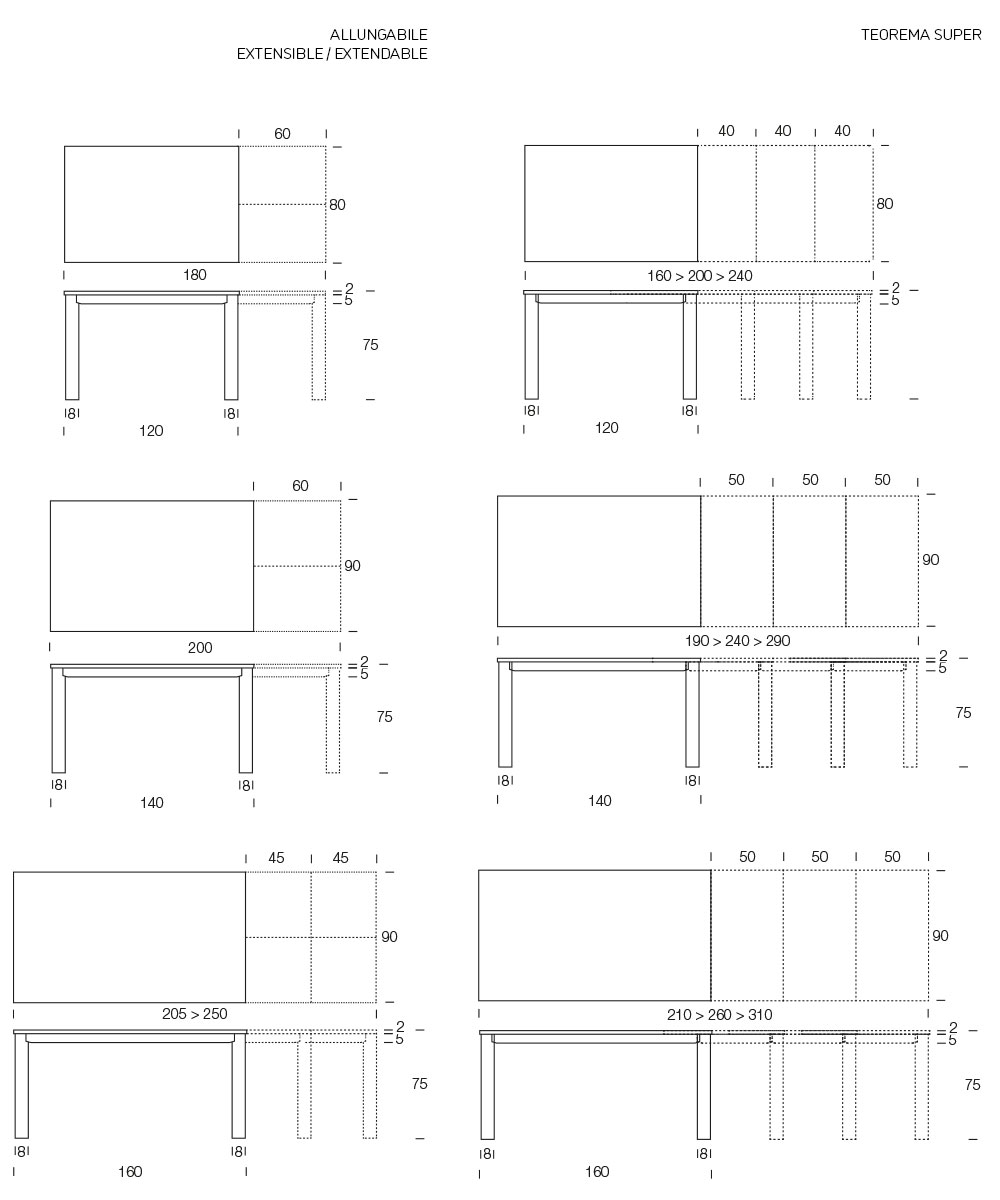 TAVOLO DA PRANZO Teorema 120×80 cm (aperto 180×80)